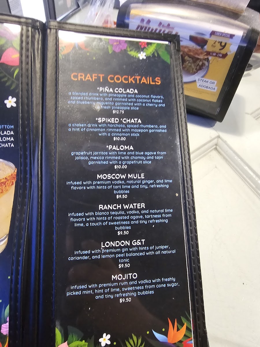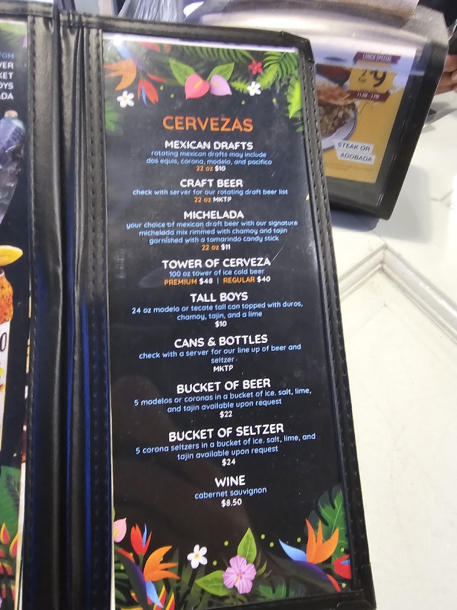 Protein (Steak or Adobada) with melted jack cheese, whole beans, guacamole, onions, cilantro, chipotle, and cilantro sauce served in between 2 corn or flour tortillas.